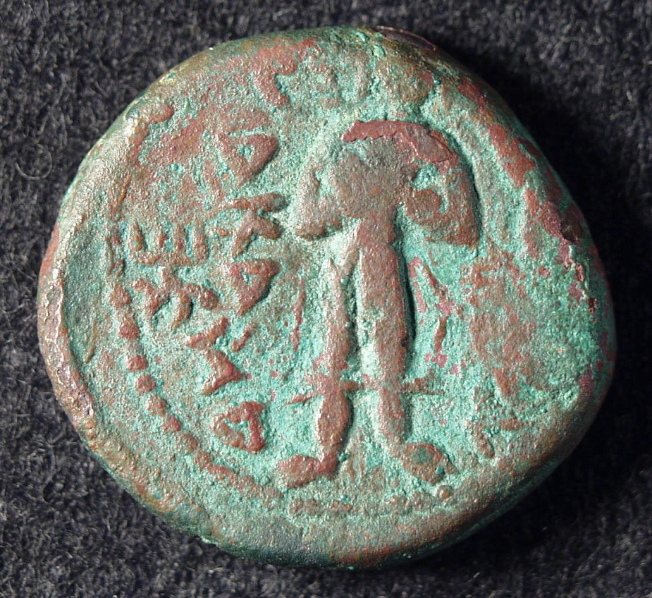 (写真左)は王の立像。向かって右側の銘文はコインの縁に沿って上から下に●【ΑΟ】ΚΑとあり、