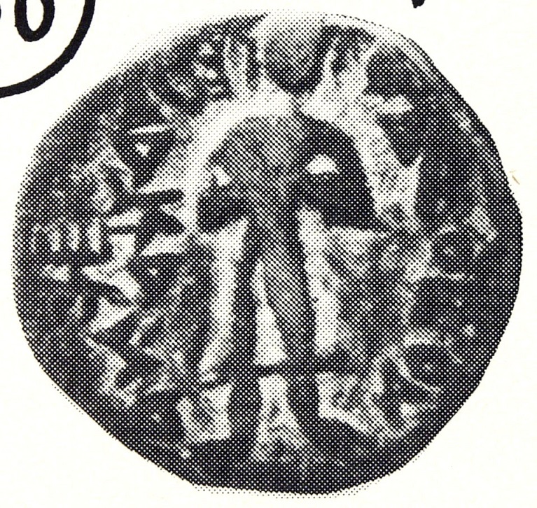 左側の銘文は下から上に【ΝΗ】●ΚΙとある。(【 】は摩滅のため見えない。●はPに似た形状の文字)