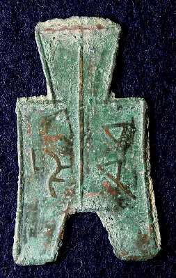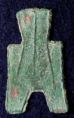 中国戦国時代の趙国の貨幣。 布銭と呼ばれるタイプのもの。 「烏+邑」とある。