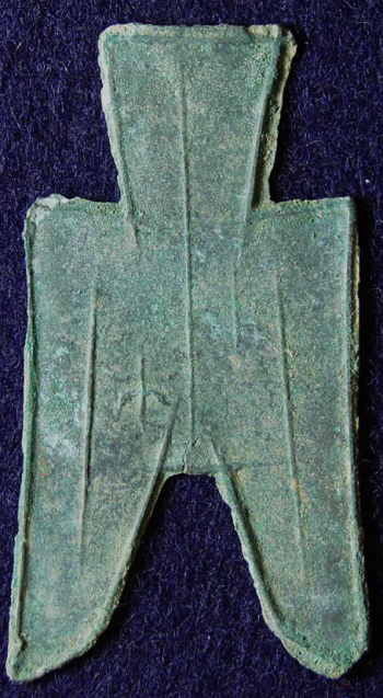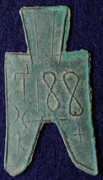 中国戦国時代の趙国の貨幣。 布銭と呼ばれるタイプのもの。 表の右「茲」、左「氏」、左下「半」。 あわせて「茲氏半」と読む。 裏の中央左に「禾」(上下逆)とある。