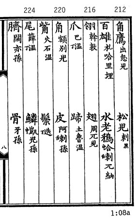 「爪」を表すba'ulという語を「巴温」と表記し、さらに「温」の左に「丁」の字を添えている。これによって、ba'unではなくba'ulと読むべきことを指示しているのである。この「丁」は華夷訳語凡例に「頂舌音也」と記されている。'舌を持ち上げる音'すなわち[l]のことである。つまり「頂」の省字としての「丁」を用いて音節末の[-l]を表す記号としたのである。